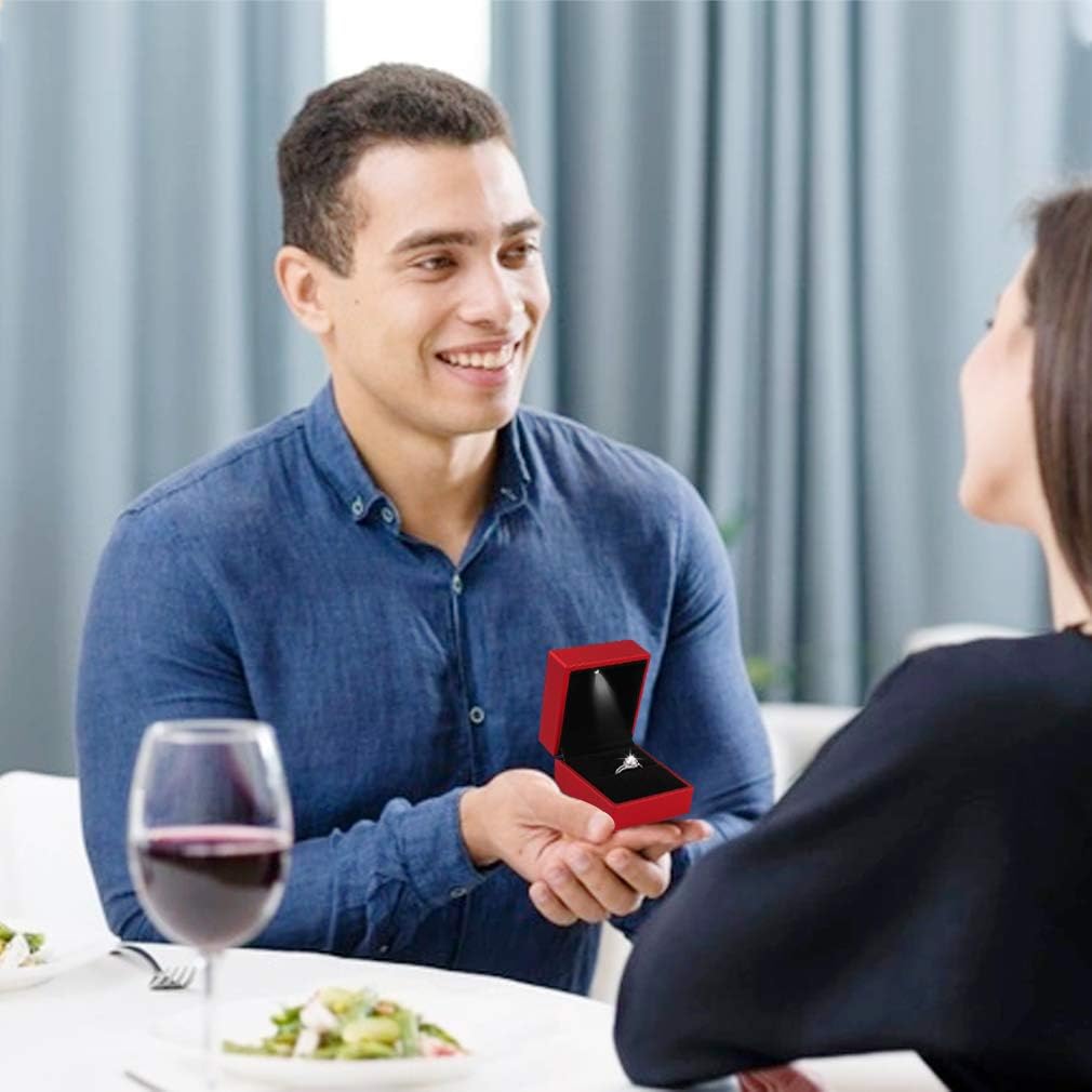 - LED light: There is an LED light in the ring box. When you open the ring box, the LED will automatically light up. The soft light shines on your jewelry, making your jewelry more beautiful and shining, and perfectly displaying your jewelry.