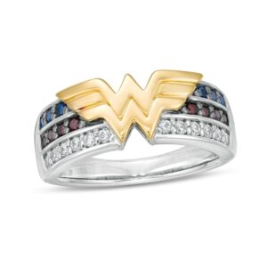 Multi-Gemstone and 1/5 CT. T.W. Diamond Ring in Sterling Silver and 10K Gold