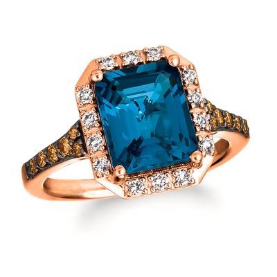 Blue Sapphire, Garnet and Diamond Tiara Ring in Sterling Silver and 10K Gold